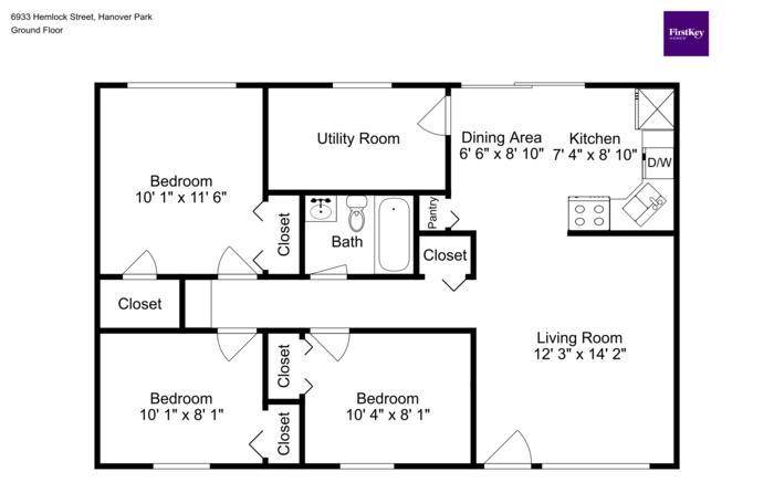 3 beds, 1 bath, 885 sqft
