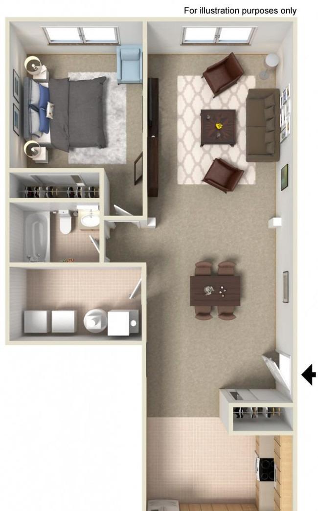 1 bed, 1 bath, 421 sqft