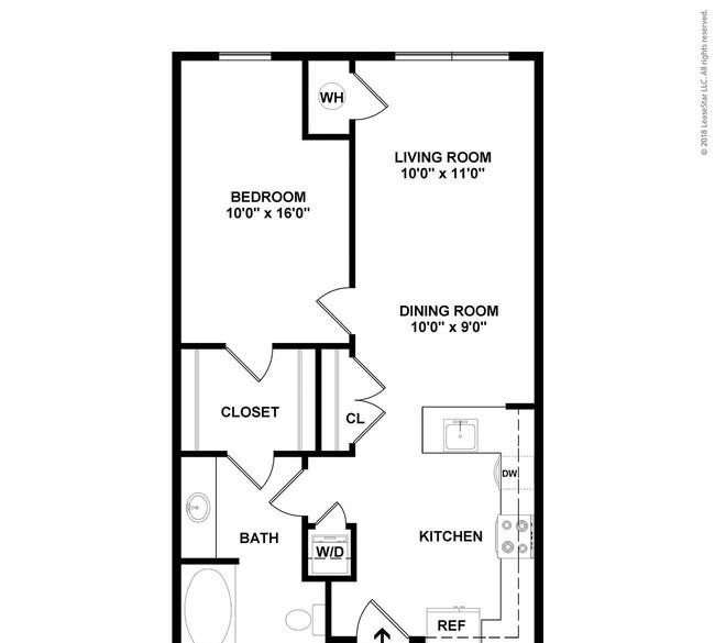 1 bed, 1 bath, 582 sqft