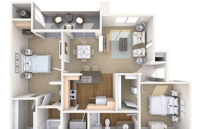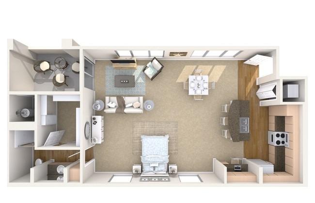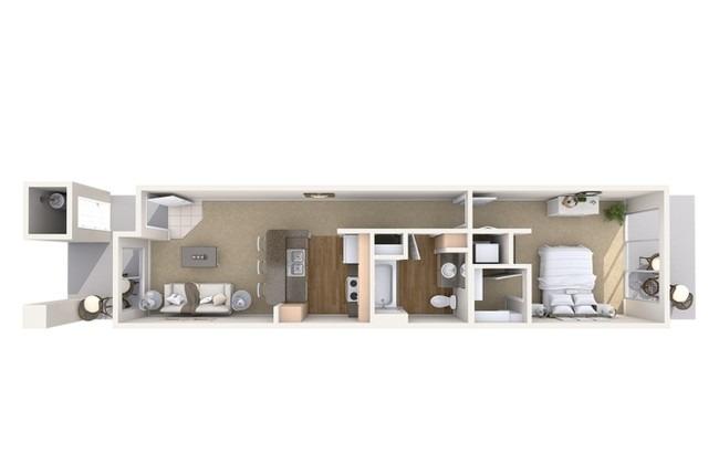 2 beds, 2 baths, 637 sqft