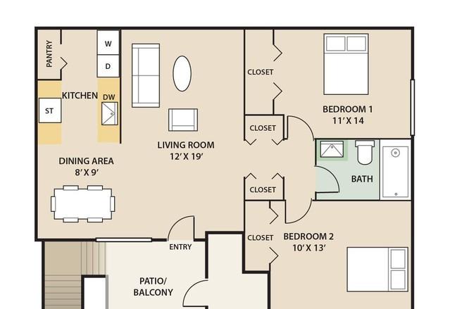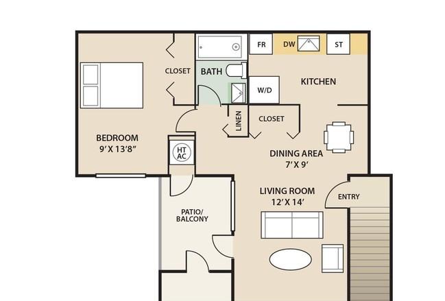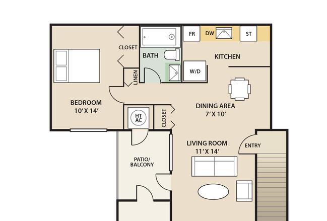 1 bed, 1 bath, 517 sqft