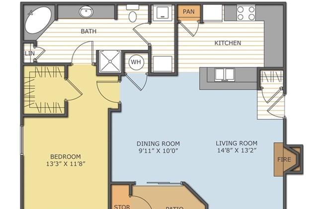 1 bed, 1 bath, 593 sqft