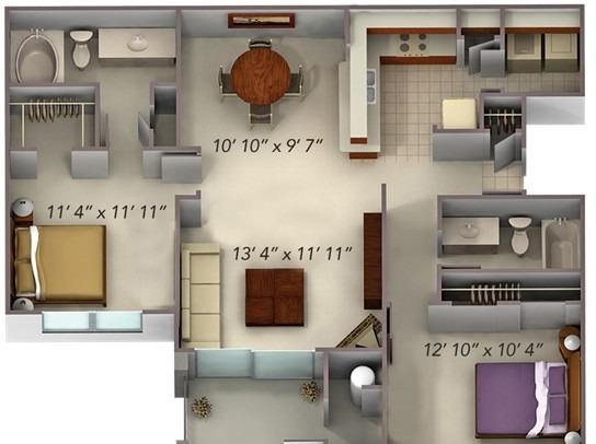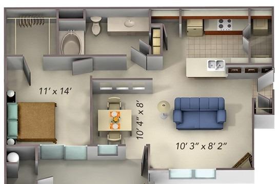 1 bed, 1 bath, 557 sqft