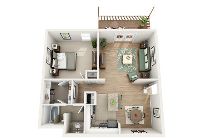 1 bed, 1 bath, 735 sqft