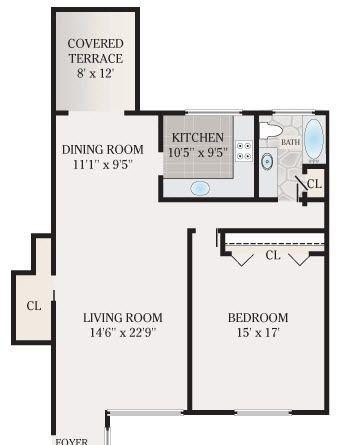 1 bed, 1 bath, 555 sqft
