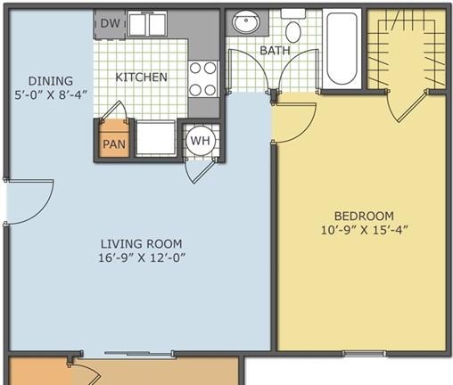 2 beds, 2 baths, 463 sqft