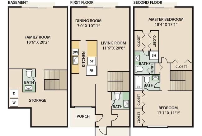 2 beds, 2.5 baths, 521 sqft