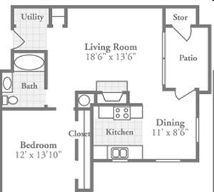 1 bed, 1 bath, 342 sqft