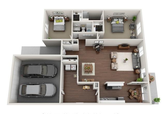 2 beds, 2 baths, 562 sqft
