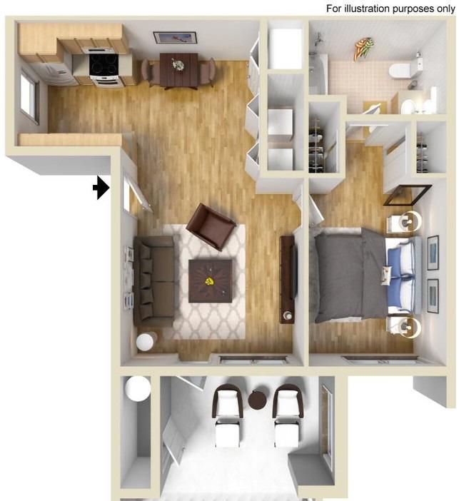 1 bed, 1 bath, 414 sqft