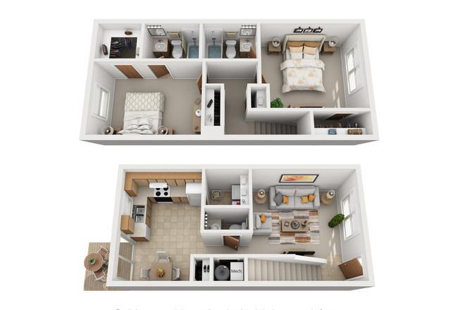 2 beds, 2.5 baths, 421 sqft
