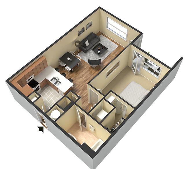 2 beds, 2 baths, 570 sqft
