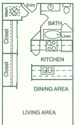 1 bed, 1 bath, 276 sqft
