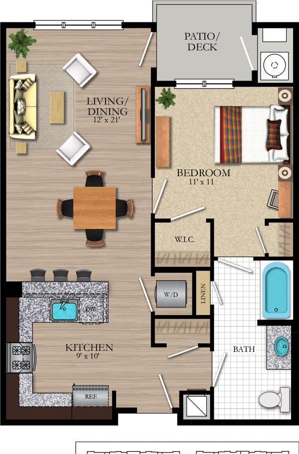 1 bed, 1 bath, 860 sqft