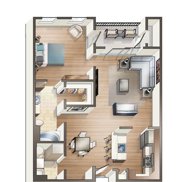 1 bed, 1 bath, 595 sqft