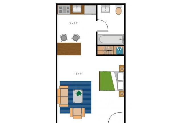 1 bed, 1 bath, 372 sqft