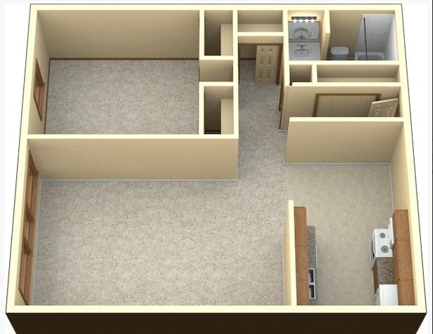 1 bed, 1 bath, 437 sqft