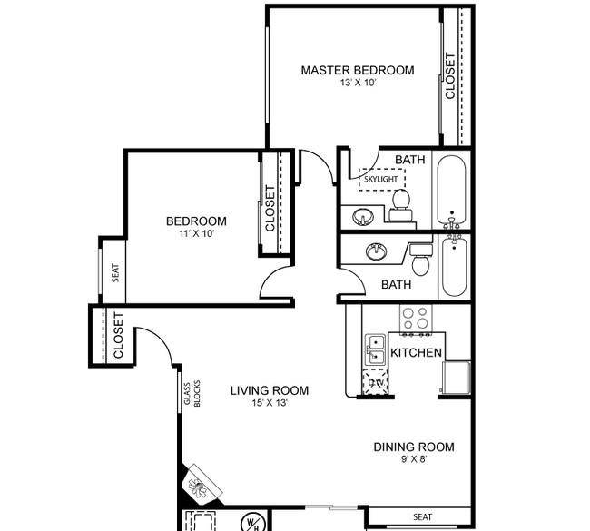 2 beds, 2 baths, 412 sqft