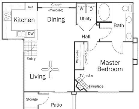 1 bed, 1 bath, 421 sqft