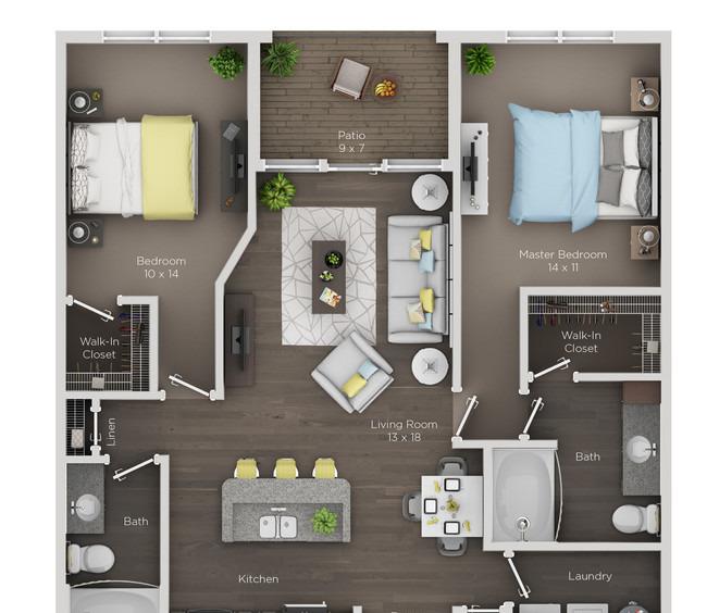 3 beds, 2 baths, 660 sqft