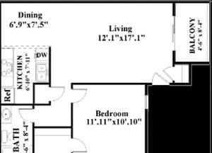 1 bed, 1 bath, 178 sqft