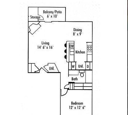 1 bed, 1 bath, 322 sqft