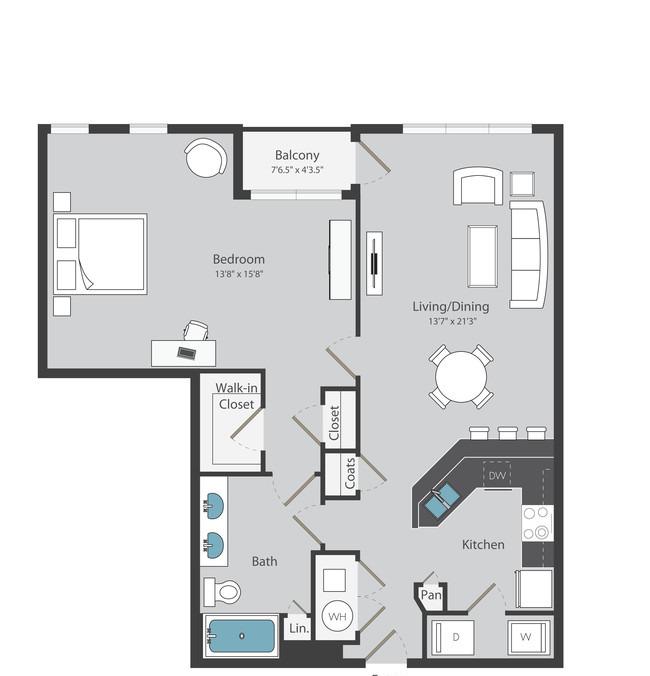 1 bed, 1 bath, 725 sqft
