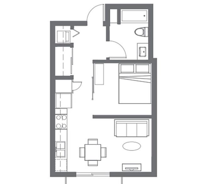 1 bed, 1 bath, 483 sqft