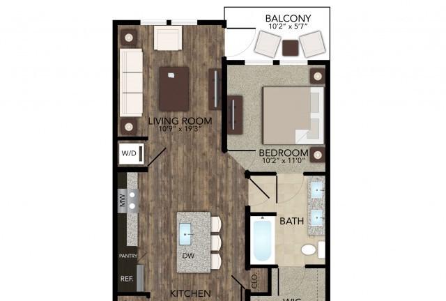 1 bed, 1 bath, 648 sqft