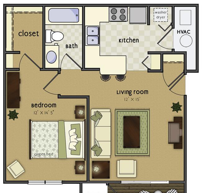 2 beds, 2 baths, 376 sqft
