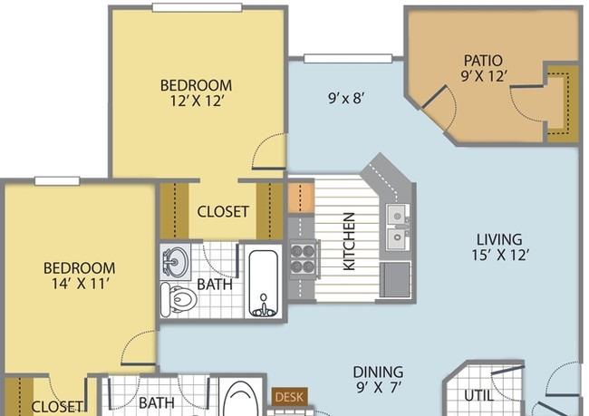 1 bed, 1 bath, 591 sqft