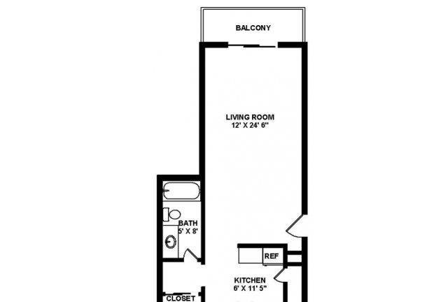 1 bed, 1 bath, 244 sqft