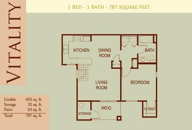 2 beds, 2 baths, 414 sqft