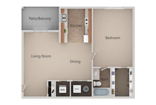 1 bed, 1 bath, 608 sqft