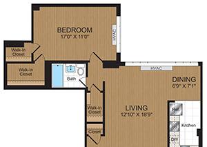 1 bed, 1 bath, 781 sqft