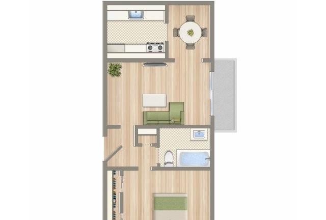 1 bed, 1 bath, 660 sqft