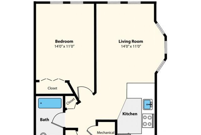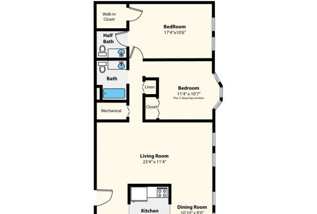 2 beds, 1.5 baths, 553 sqft