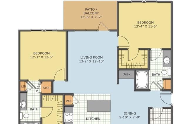 2 beds, 2 baths, 956 sqft