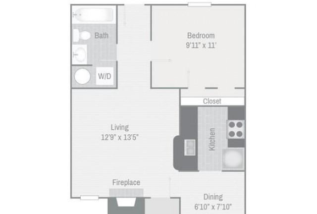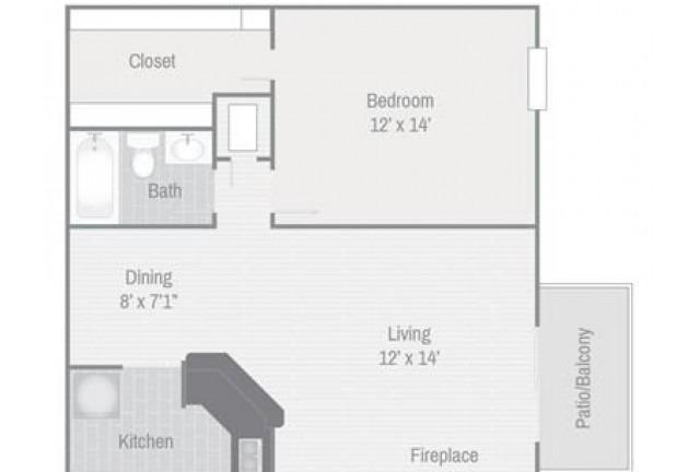 1 bed, 1 bath, 371 sqft