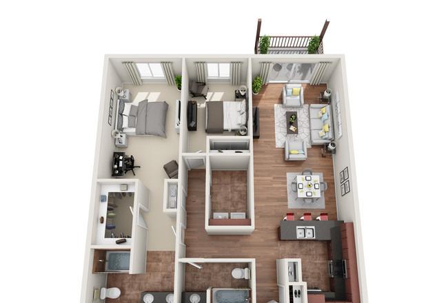 2 beds, 2 baths, 508 sqft