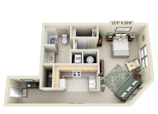 1 bed, 1 bath, 2036 sqft