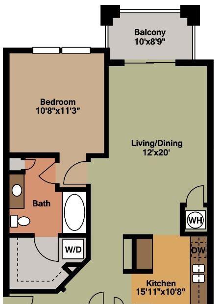 2 beds, 2 baths, 500 sqft