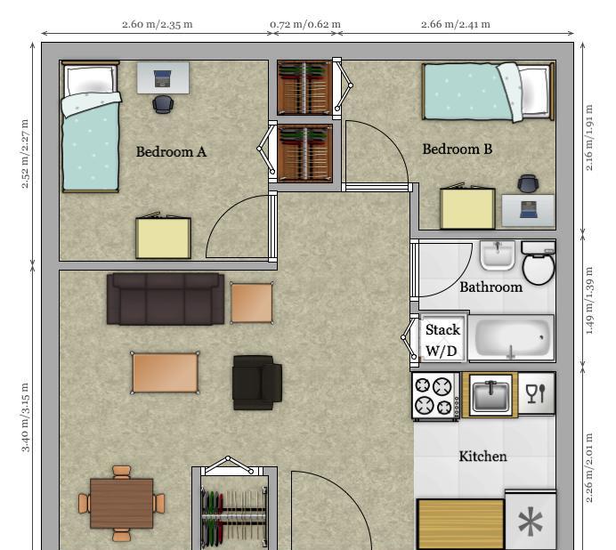 2 beds, 1 bath